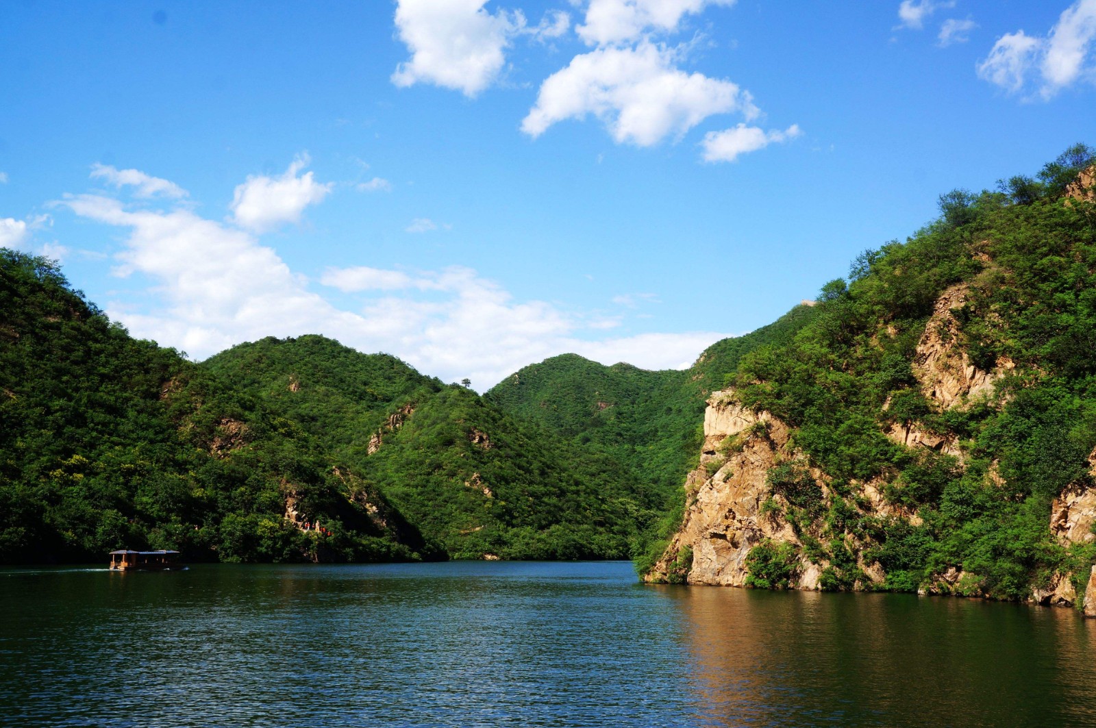水中長(zhǎng)城是因大壩截流,導(dǎo)致水位上升,把處于低谷部位的長(zhǎng)城淹沒在水中,形成長(zhǎng)城戲水,水沒古城垣的景象,為景區(qū)一絕。而象黃花城三段長(zhǎng)城入水的景觀在國(guó)內(nèi)確是絕無(wú)僅有。有詩(shī)云:城抱碧波漣,水沒古城垣;城水相呼應(yīng),壯美自悠然。