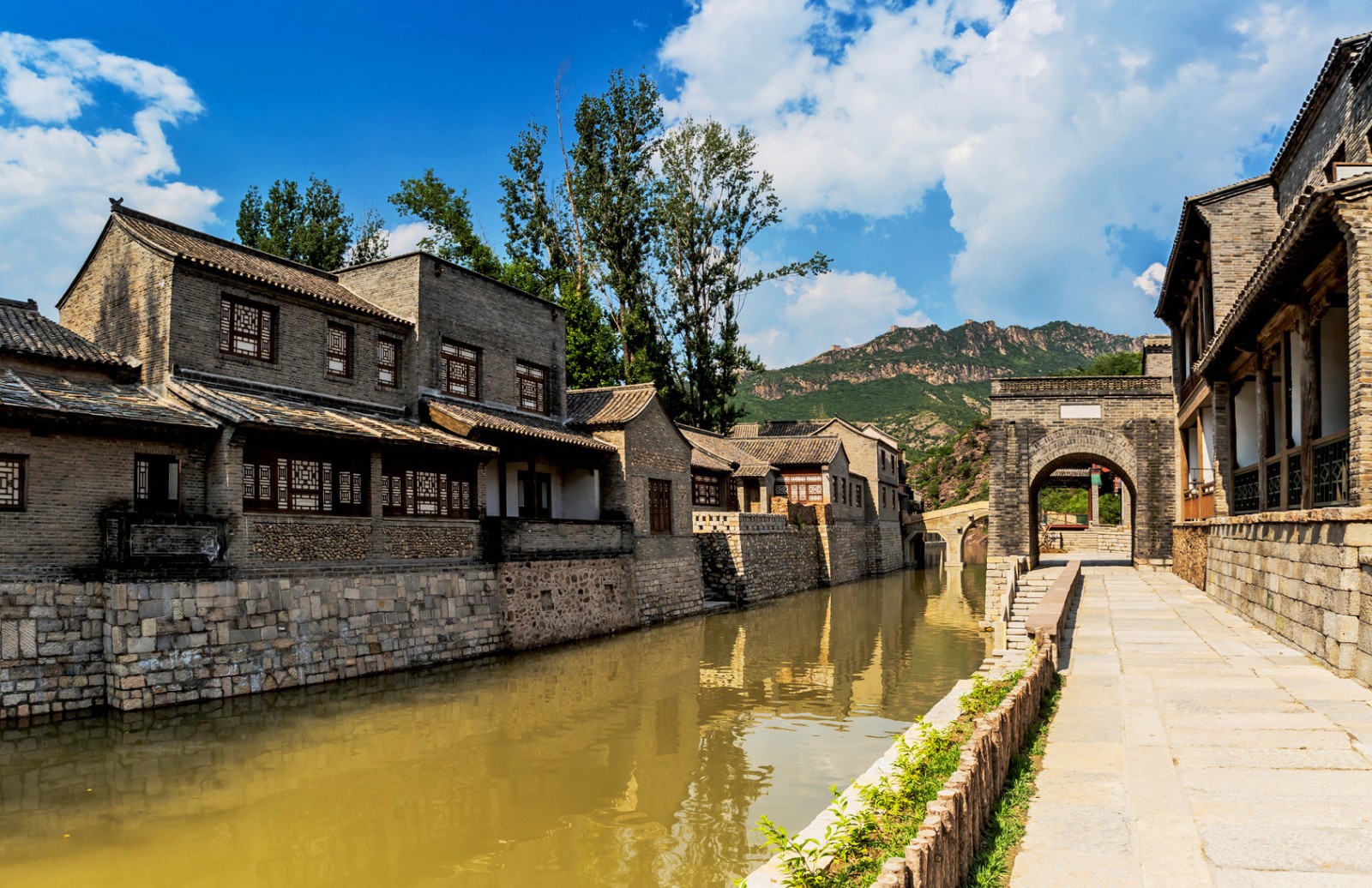 古北水鎮(zhèn)位于北京市密云區(qū)古北口鎮(zhèn),坐落在司馬臺長城腳下。古北口自古以雄險著稱,有著優(yōu)越的軍事地理位置,《密云縣志》上描述古北口“京師北控邊塞,順天所屬以松亭、古北口、居庸三關(guān)為總要,而古北為尤沖”。古北口以其獨特的軍事文化吸引了無數(shù)文人雅士,蘇轍、劉敞、納蘭性德等文詞大家在此留下了許多名文佳句,更有康熙、乾隆皇帝多次贊頌,以“地扼襟喉趨溯漠,天留鎖鑰枕雄關(guān)”來稱頌它地勢的險峻與重要。