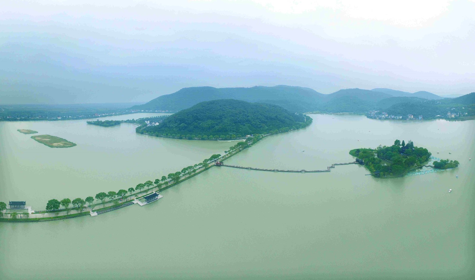 邊山,湖中堤,湖內(nèi)島,自然別致,相得益彰