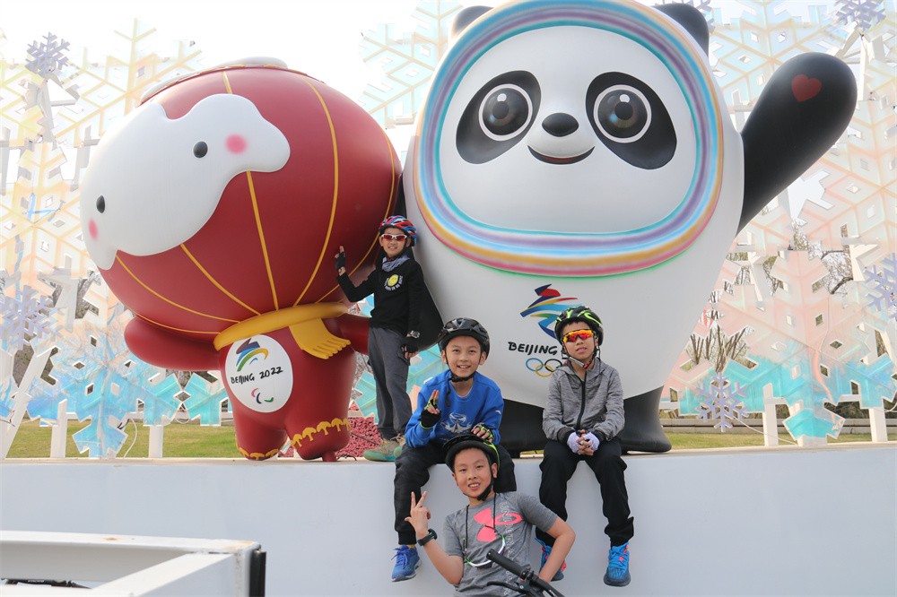 和冰墩墩合影