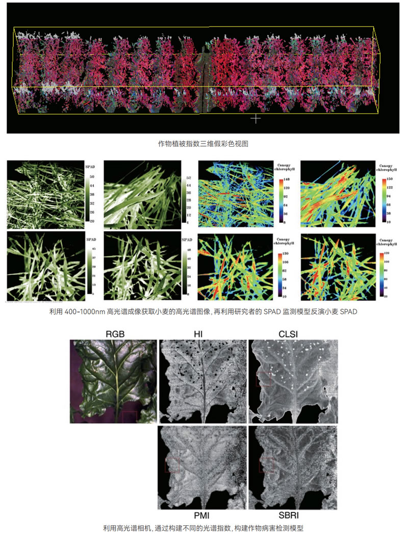 高光譜成像模塊:圖像中每一象素都記錄了其對應樣品點(diǎn)的化學(xué)組成、質(zhì)量、顏色等信息的光譜特征,用于對植物進(jìn)行生物量的定性與定量分析;